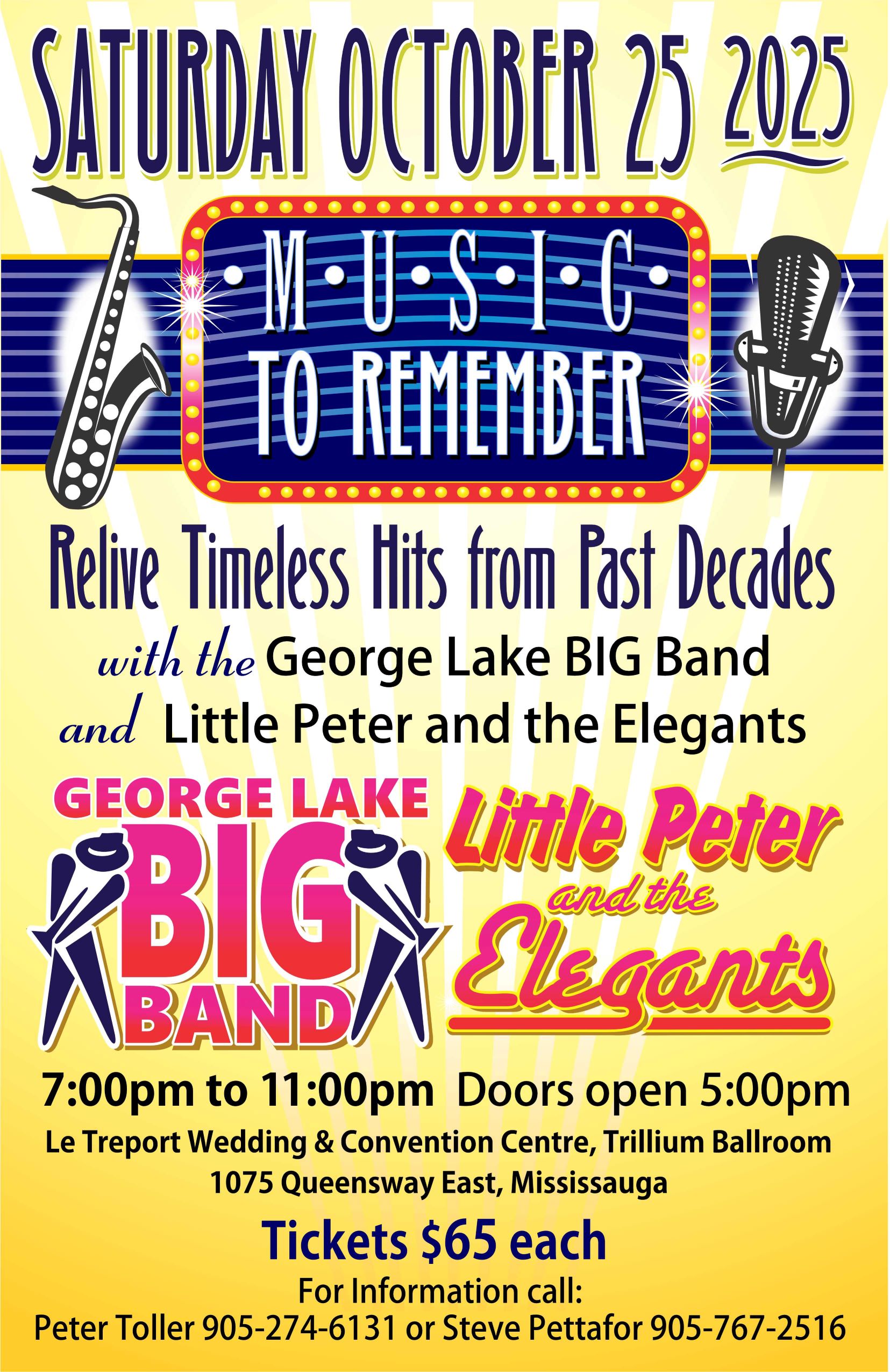 THE music event in November is when the George Lake BIG Band and Little Peter and the Elegants combine to give you wonderful music from many decades. We have set the date this year as Saturday, October 25